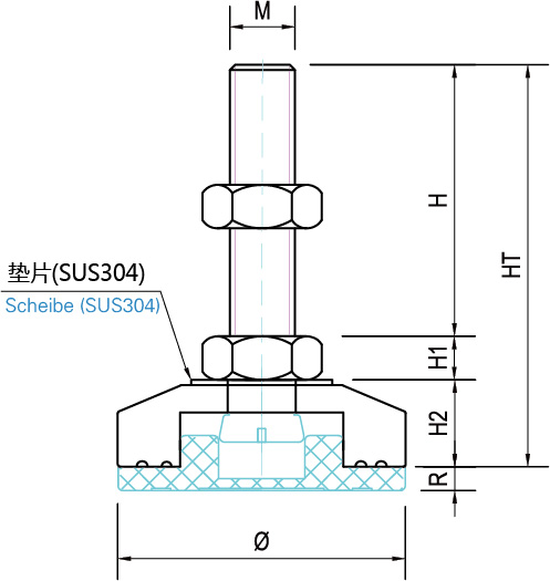 鋁合金腳杯 不銹鋼螺栓 丁腈橡膠腳墊 |