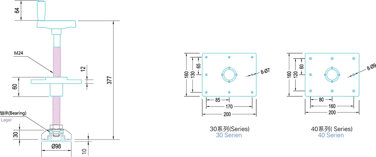 - Sehr leichte und einfache Verstellbarkeit durch die montierte Handkurbel- 適用于大型平臺與移動工作梯,便于調整平臺高度,承重能力強。